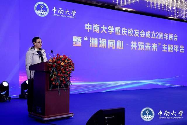 庆典在全体校友的热烈掌声中拉开帷幕。重庆校友会会长何峰在致辞中深情回顾了校友会两年发展历程。他表示,校友会始终践行“知行合一、经世致用”的校训精神,积极构建“中南人帮中南人”的服务平台,推动校友企业间深度合作,形成了独具特色的“母鸡带小鸡”赋能模式,助力校友事业共同成长,孵化了多家校友企业。