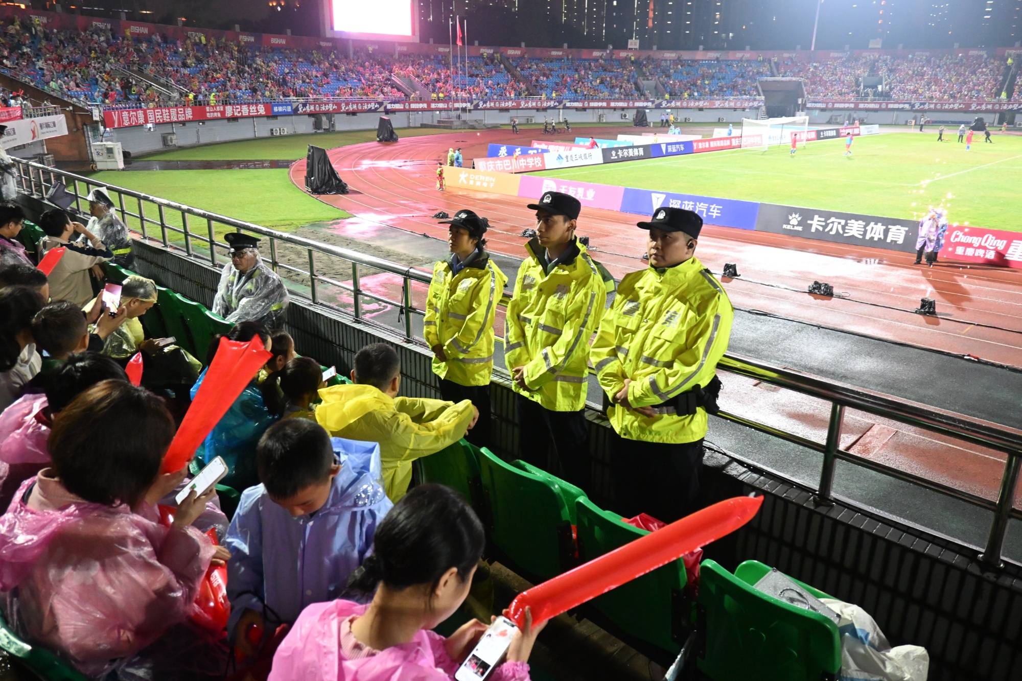 据介绍,区公安局提前成立安保领导小组,赛场设临时指挥部实时调度,划定“核心圈、严控圈、疏散圈”,结合硬质隔离与警力形成安全闭环。各警种联动:治安支队负责防爆安检、重点人员稳控及无人机反制;交管支队管控交通、设专用停车区并提供球迷摆渡服务;特警携防暴装备备勤,璧泉派出所联合社区严防高空抛物。