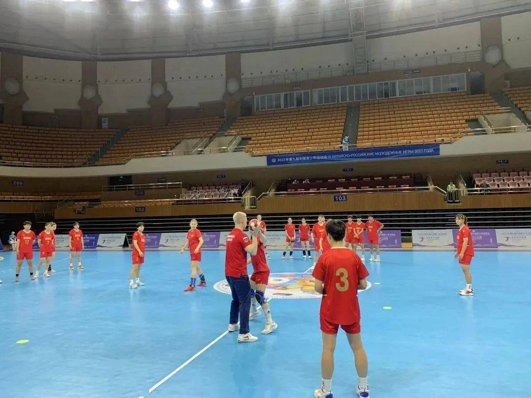 5月24日中俄青少年运动会手球比赛第二场继续在渝北区体育馆进行。上午,两支球队开展了赛前合练,由俄罗斯队主教练Roman带领双方运动员进行了热身以及手球项目专项训练,通过合练,运动员们不光体验了一堂俄式训练课,更增进了双方之间的友谊。