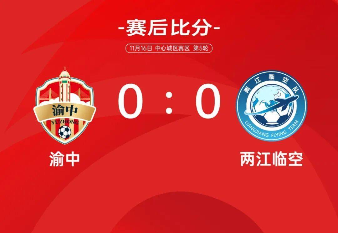 中心城区赛区“领头羊”两江临空客场对阵赛区排名第二的渝中,关注度拉满。本场比赛,双方实力接近,攻防节奏很快,虽然创造出不少机会,但始终距离进球差了一步,最终,双方0:0互交白卷。值得一提的是,这是两江临空“渝超联赛”首场平局,之前3场比赛,他们保持全胜。本场结束后,两江临空3胜1平积10分继续领跑,渝中2胜3平积9分,继续排名中心城区赛区第2。