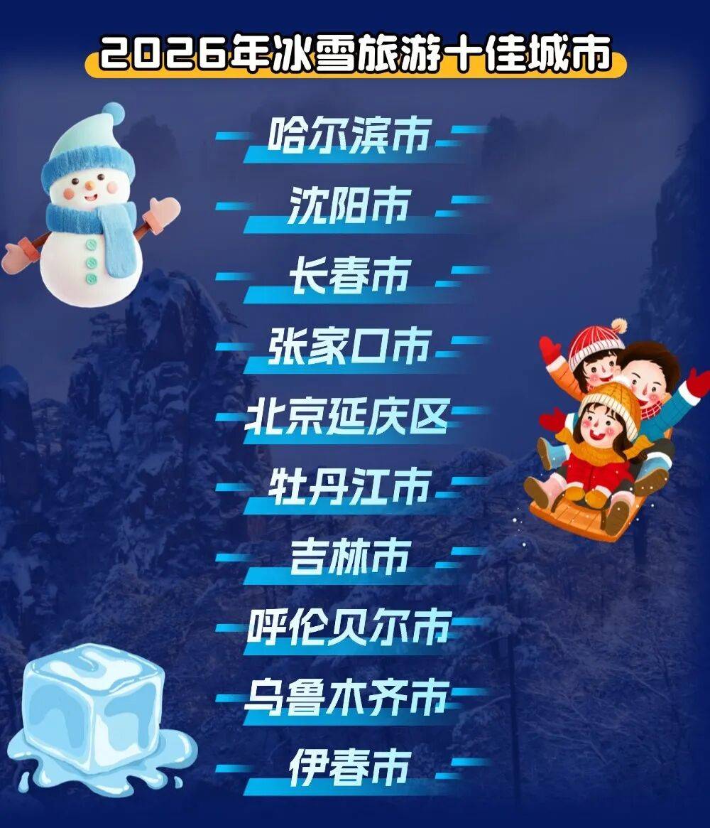 1月5日上午,2026冰雪旅游发展大会在哈尔滨举行。大会发布2026年冰雪旅游十佳城市,其中,哈尔滨市位居榜首,沈阳市紧随其后,长春市、乌鲁木齐市进步较大。