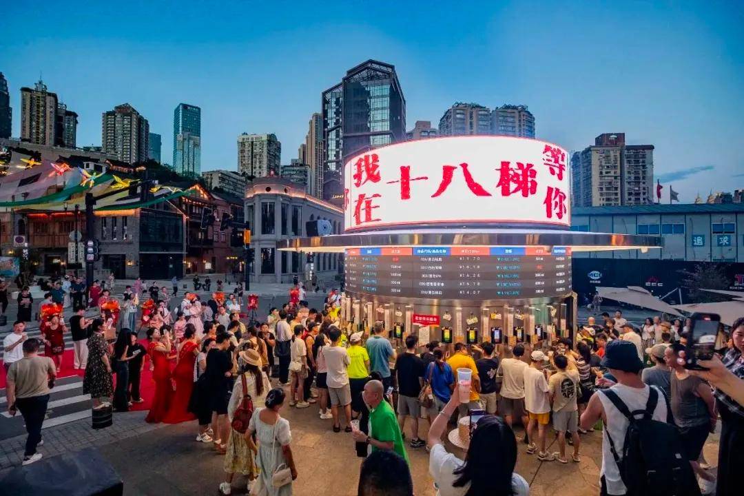十八梯守备街“加油站”融合足球元素与巴渝建筑特色,打造沉浸式夜经济场景;新世纪百货解放碑商都中庭LED屏播放赛事;苏宁易购电视专区免费观看比赛;霸王茶姬主题店球迷集体观赛;老甘家小龙虾江湖菜外摆设置观赛专区......这些观赛点不仅提供了观看比赛的场所,更创造了消费的新场景。