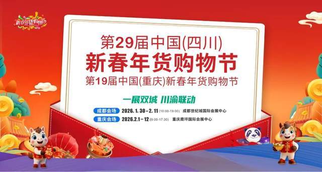 谁能在这场年货大战中脱颖而出?哪个品牌能成为消费者疯抢的爆款?答案,就在第29届中国(四川)新春年货购物节!立足川渝“农、商、文、旅、健”多元产业根基,本届年货节以“全球年味会客厅”为超级IP,打造集展示展销、体验消费、商贸合作、品牌推广于一体的高能级平台,助力企业一键链接川渝核心市场,解锁新年增长新密码!