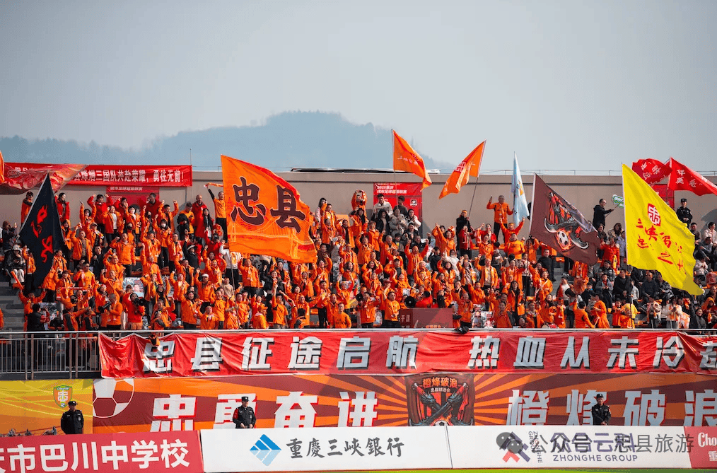 你们是赛场最耀眼的光。主场看台上,橙红战衣汇成海洋,“忠县雄起”的呐喊与长江涛声共鸣;客场远征途中,你们跨越山川不离不弃,以身影传递温暖。无论胜败,你们的掌声与呐喊,诠释着“输了一起扛,赢了一起狂”的豪情,是球队最坚实的后盾。